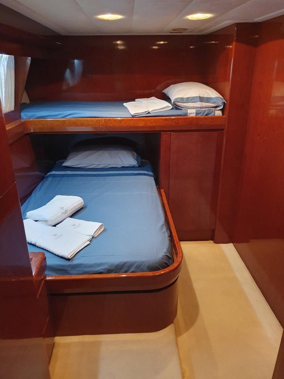 Designed to comfortably host up to 8 guests overnight, Brigitte features 4 refined guest cabins, each with a private bathroom, air conditioning, TV, and interphone system. The yacht’s cozy interior includes a living room with entertainment systems, a fully equipped kitchen, and fine furnishings for a truly inviting onboard stay.