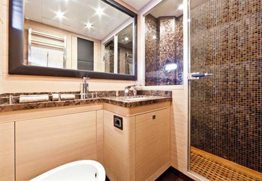 The yacht accommodates up to 4 guests in 3 cabins, all with en-suite bathrooms: