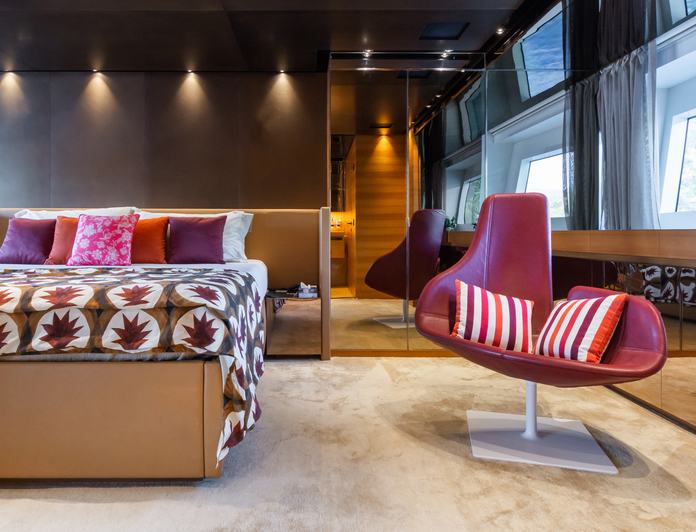The 37.95m/124’6″ motor yacht ‘Takara One’ by the Italian shipyard Sanlorenzo offers flexible accommodation for up to 12 guests in 5 cabins and features interior styling by Italian designer Francesco Paszkowski Design.