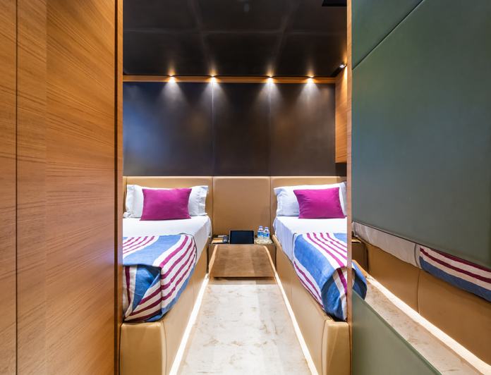 Built in 2016, Takara One offers guest accommodation for up to 12 guests in 5 suites comprising a master suite, one VIP cabin, one double cabin and two twin cabins. There are 7 beds in total, including 1 king, 2 queen and 4 singles. She is also capable of carrying up to 6 crew onboard to ensure a relaxed luxury yacht charters experience.