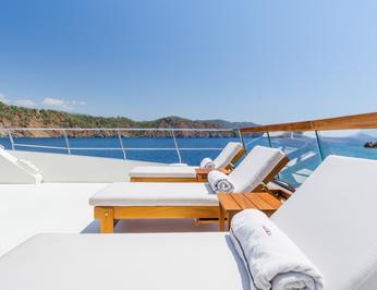On your charter, you’ll find plenty to keep you busy and entertained such as a deck jacuzzi, perfect to enjoy the scenery with your favourite drink in hand.